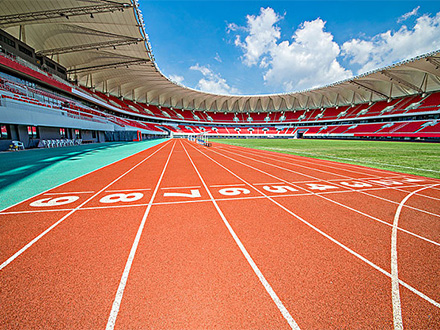 (4)工艺线喷划:  按照现行的田径场地设施标准准确测量出工艺线的位置,然后用聚氨酯漆喷刷。